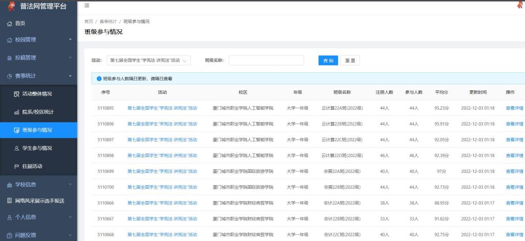 组织全校九千余名学生全部参与第七届全国学生“学宪法 讲宪法”活动,“学”“做”结合,灵活采取寓教于乐、寓学于趣,“宪法卫士”网络学习答题平均成绩近90分。选拔优秀学子积极参与宪法知识竞赛和演讲比赛等活动,我校学生黄骏麒在第七届全国学生“学宪法 讲宪法”活动福建赛区总决赛演讲比赛中获得优秀奖,实现我校在该奖项上的重大突破。以赛促学、以学促行,引导广大学子将习近平法治思想和社会主义法治精神内化于心、外化于行,推动青年宪法学习教育走深走实、取得实效。