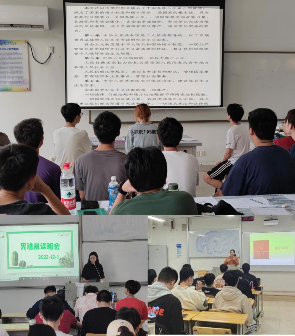 各部门、学院利用“三会一课”、主题党日、主题团日(班会)等时机,采取集中学习辅导、研讨交流、观看宪法宣传片、撰写个人学习宪法心得体会等方式,结合当前疫情防控形势和校园常见法律问题,组织开展宪法专题学习教育,引导师生员工带着感情学、带着理性悟,切实强化法治意识,进一步明确公民个人权利和义务边界,帮助师生了解掌握自我保护、防灾减灾救灾以及防范学生网络诈骗、人身侵害等相关法律知识和技能,激励师生争做社会主义法治的忠实崇尚者、自觉遵守者、坚定捍卫者。