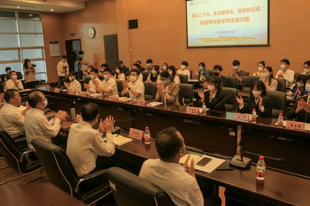 为引领师生深入学习习近平总书记在庆祝中国共青团成立100周年大会上的重要讲话精神,更好激励广大青年师生在实现中华民族伟大复兴中国梦的新征程上奋勇前进,2022年5月12日上午,我校在会议二召开“喜迎二十大、永远跟党走、奋进新征程”校领导与青年师生面对面座谈会,畅谈体会、抒发感想。党委书记蒋先立、校长唐宁、党委副书记王育培、副校长吴松青出席座谈会。