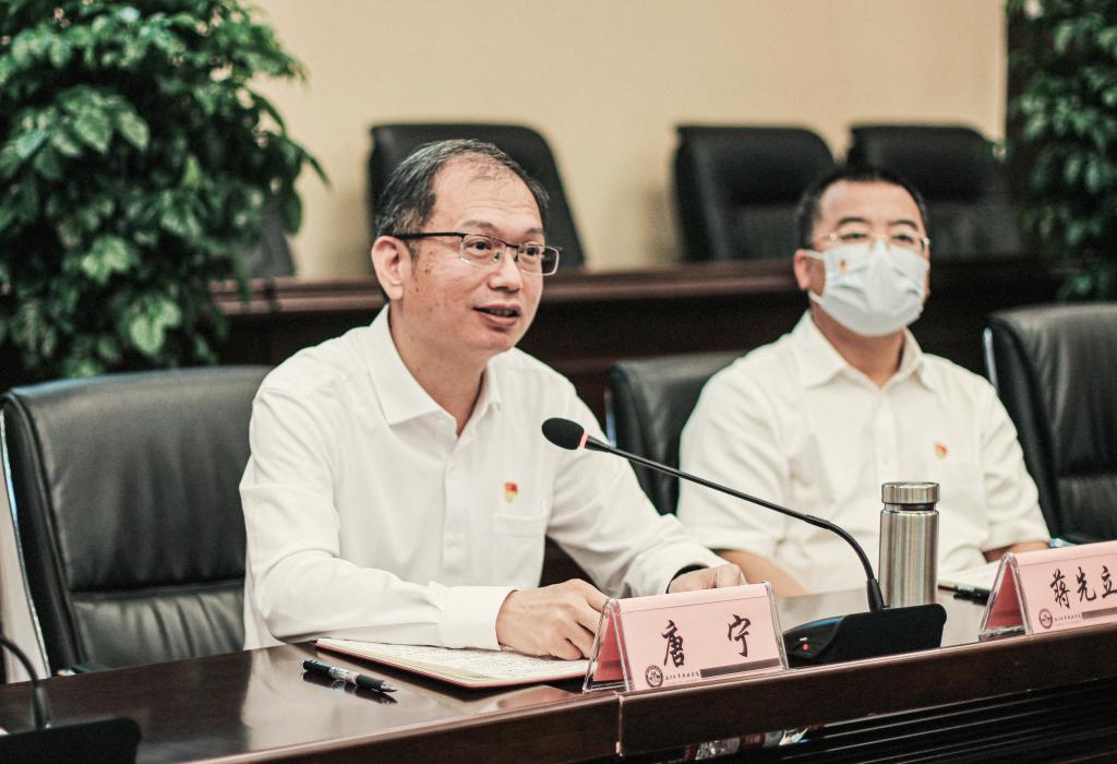 唐宁重点就学校师生如何更好地深入学习贯彻习近平总书记的重要讲话精神,指出一是要坚守初心,牢记使命,走在时代前列;二是要永葆上进心,全方位提升个人素质;三是要共育匠心,坚守专注,精益求精,教师要对标有理想信念、有道德情操、有扎实学识、有仁爱之心的“四有”好老师标准,将“把心安好、把事做好、把话说好”的“三好”作为育人目标共识,努力培养学生成为更高素质“盖军衔”式技术技能人才,成为明理立行的云顶三好学子。